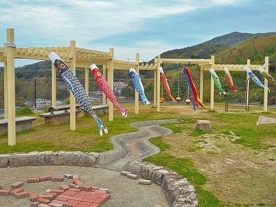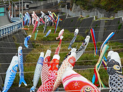 4月21日 子供の日・ゴールデンウイークに向けて、今年も河原と与種広場に鯉のぼりを設置しました。